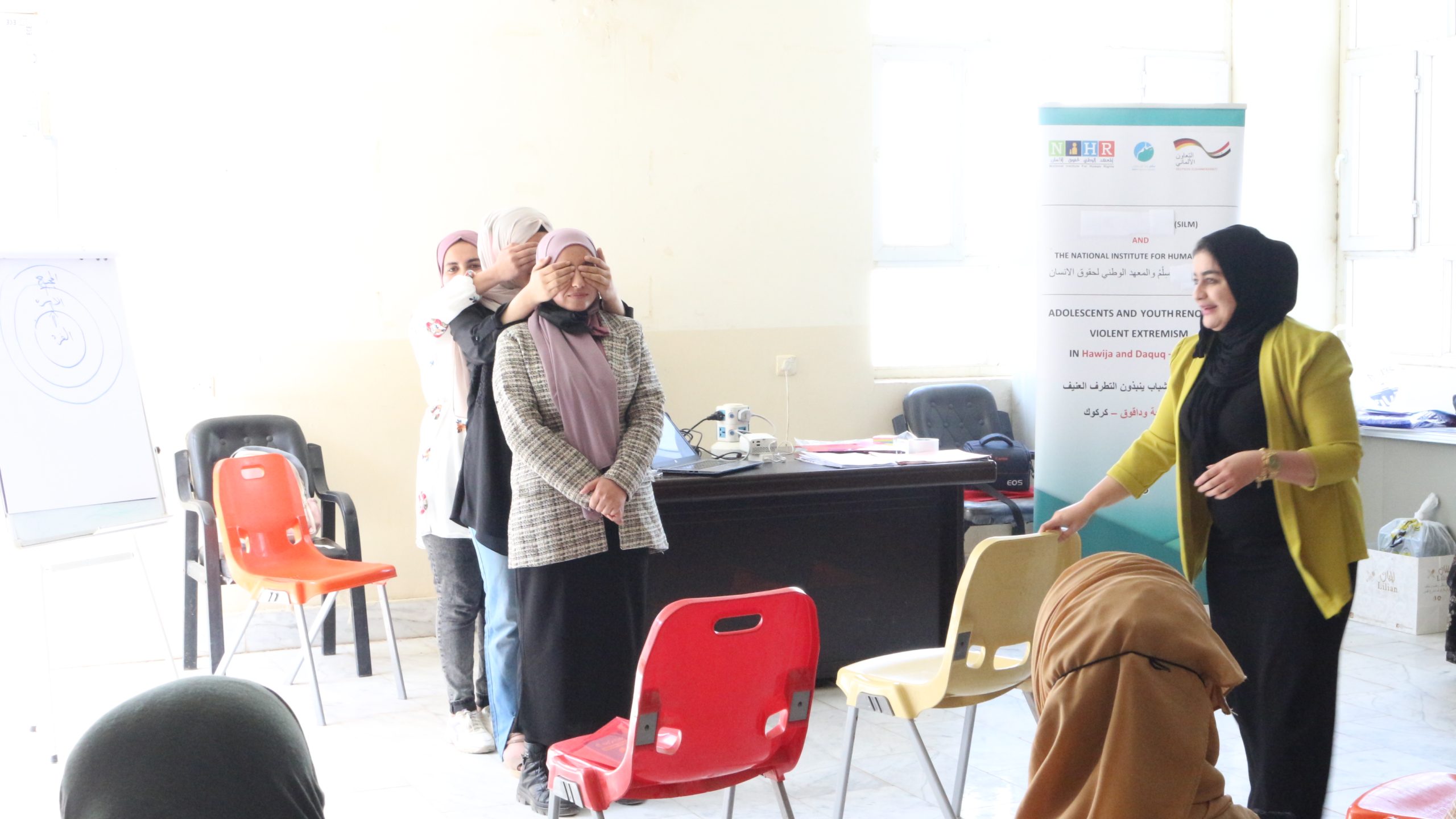 Communication and effective communication is the title of the one-day training workshop held by NIHR within the activities of the project (Adolescents and Youth Reject Violent Extremism in Hawija and Daquq Districts ), in which 25 adolescent girls and women in Hawija district participated to develop their cognitive and practical skills on effective communication mechanisms to contribute to highlighting their role in their communities, reintegrating them into society properly, and delivering their voices to decision-makers in their areas.
