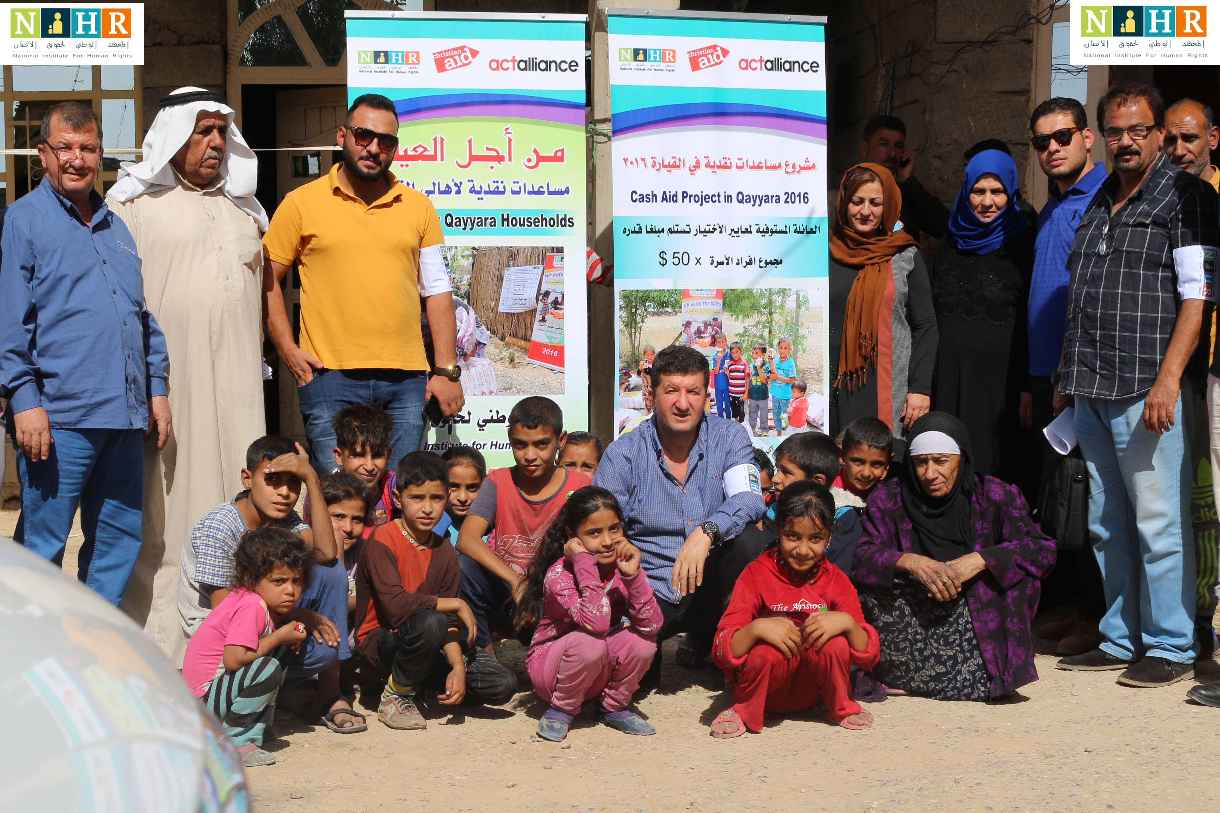 قامة منظمة المعهد الوطني لحقوق الانسان بأستهداف العوائل النازحة والعائدة المتواجدة في المناطق المتاخمة والقريبة من المناطق التي تشهد عمليات عسكرية والتي تعتبر خطرة وغير امنة حرصا من المنظمة باغاثة تلك العوائل وتقديم الاستجابات الإنسانية السريعة لهم وتحت ظروف , حيث تشهد المناطق التي تم استهدافها حرائق لابار النفط وتصاعد الدخان الاسود وتلوثا واضحا للبيئة وكذلك عدم ضمان خلو المنطقة من العبوات الناسفة واحتمالية سقوط قذائف المدفعية والقصف الجوي وخطر الهجمات المفاجئة المحتملة للمجاميع المسلحة في المنطقة, فقد قامت المنظمة بتوزيع البالغ المالية على العوائل النازحة والعائدة المتواجدة في قرية العوسجة التابعة لناحية القيارة بواقع (292) عائلة والبالغ عدد افرادها (1716) فردا بمبلغ (50$) للفرد الواحد, بعد اجراء المسح الميداني للمنطقة والتنسيق المباشر مع الإدارة المحلية والأمنية وكذلك شيوخ العشائر ومختاري المناطق بهدف ضمان شفافية العمل